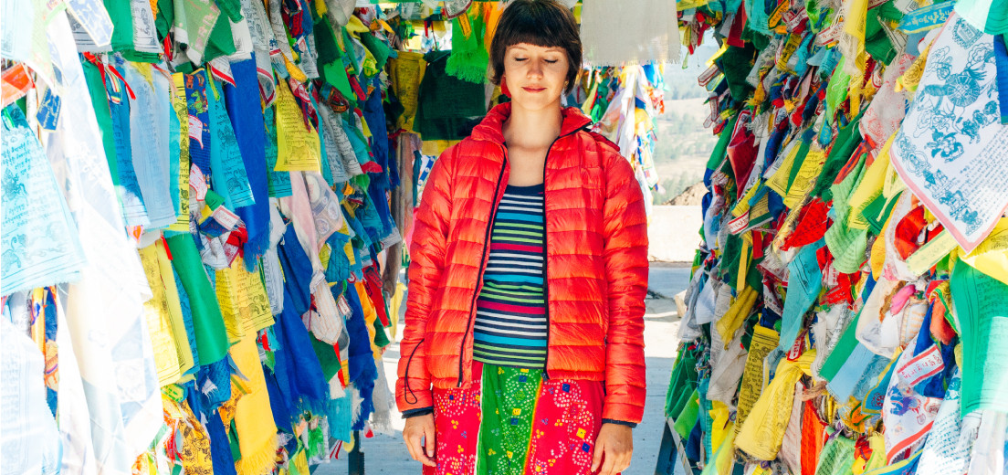 В дацане тоже принято снимать обувь. Возьми с собой бахилы или купи в киоске дацана. Внутри помещения сними головной убор. Исторически в буддизме женщины носили юбки, так что лучше одеться традиционно.